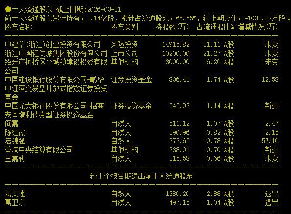 据了解,2025年二季度,葛卫东和葛贵莲大举扫货会稽山,截至2025年6月30日,上述二人分别持有会稽山497.15万股和1380.2万股,进入该公司的前10大流通股东名单。